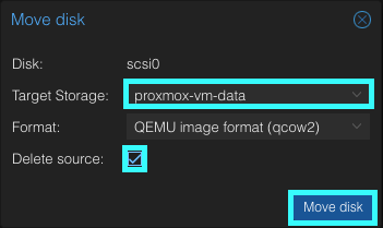 - Click on Move disk to initiate the migration process.